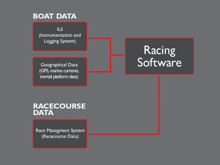 All’interno del Racing Software confluiscono anche i dati sulle coordinate delle boe, dei boundary e la geometria del campo di regata, forniti dal comitato di regata attraverso un ulteriore sistema, il Race Management System. I valori dei punti GPS vengono trasmessi con una frequenza di circa 5Hz, vale a dire 5 punti al secondo.