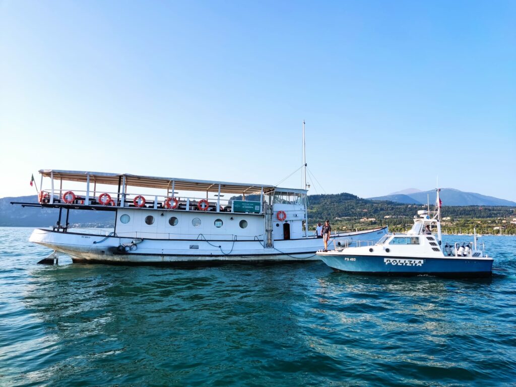 Nel mentre il Comandante della Nave rappresentava alla Sala Operativa della Guardia Costiera la situazione in essere, la Motovedetta della Squadra Acque Interne di Peschiera del Garda della Questura di Verona, transitava in zona e veniva richiamata a gesti dall’equipaggio della nave alla deriva.