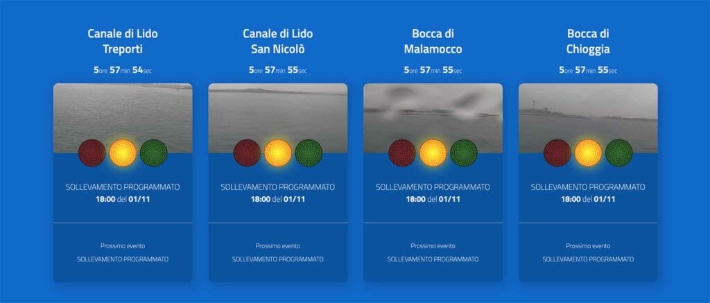 Il sollevamento delle barriere mobili del sistema avverrà già a partire dalle 18 di oggi, lunedì 1 novembre. L’operazione si concluderà alle 23 del primo novembre e i canali verranno riaperti alla navigazione all’una del 2 novembre.