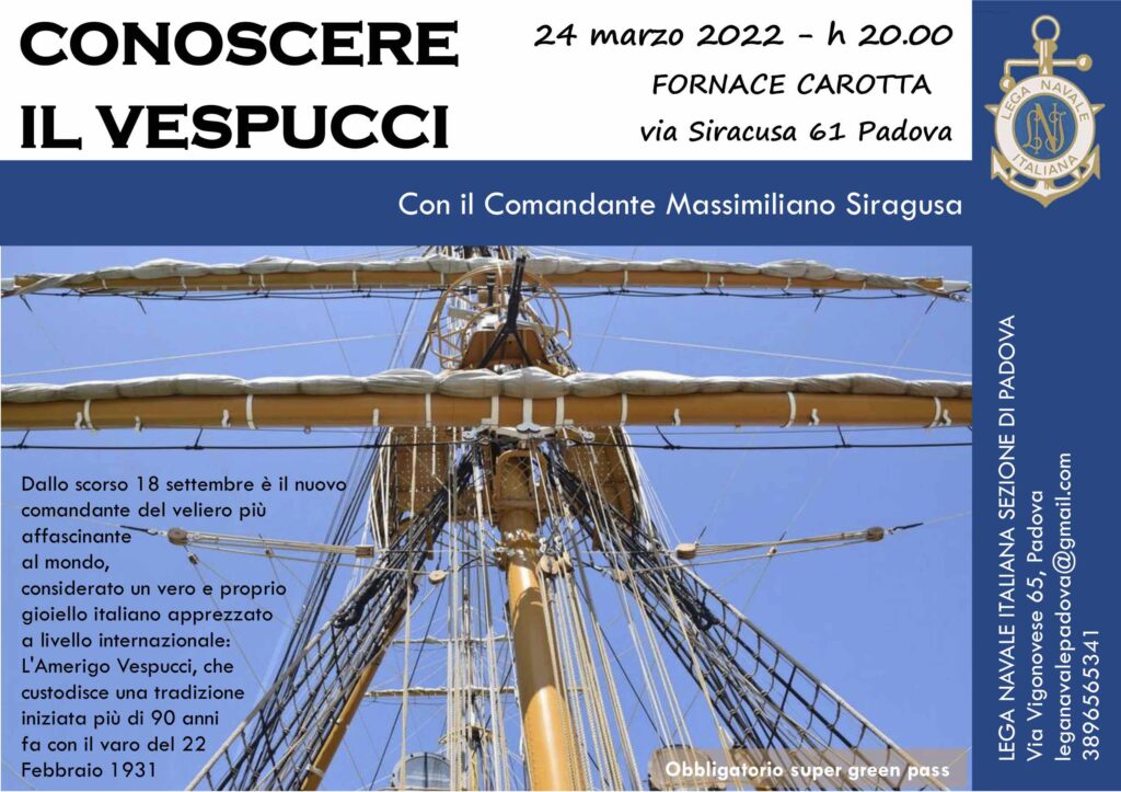 Conoscere il Vespucci. È questo il titolo della serata organizzata dalla sezione di Padova della Lega Navale Italiana in programma giovedì 24 marzo.