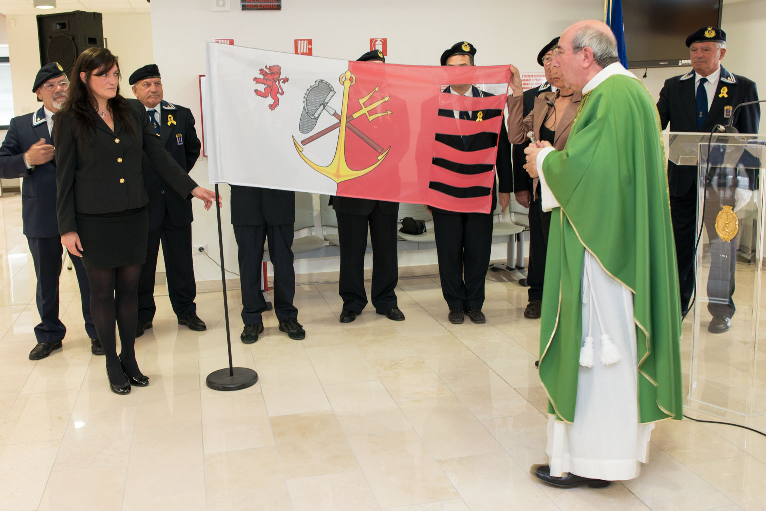 Destano di giorno in giorno sempre più interesse le numerose manifestazioni promosse dall’Azienda Speciale per il Porto (n.d.r. l’A.S.P.O. della Camera di commercio di Venezia) nell’ambito di Ottobre Blu che si concluderà il 27 ottobre prossimo a Chioggia. Nel secondo giorno di apertura dell’evento nautico-marinaresco, unico in Italia che vede insieme Marina Militare e Marina Mercantile per rilanciare l’economia marittima costiera che fa capo ai porti fluvio-marittimo e peschereccio di Chioggia, e stata la volta della presentazione ufficiale e della benedizione da parte del vicario generale del Vescovo mons. Francesco Zenna della bandiera che porta lo stemma della Marineria di Chioggia.