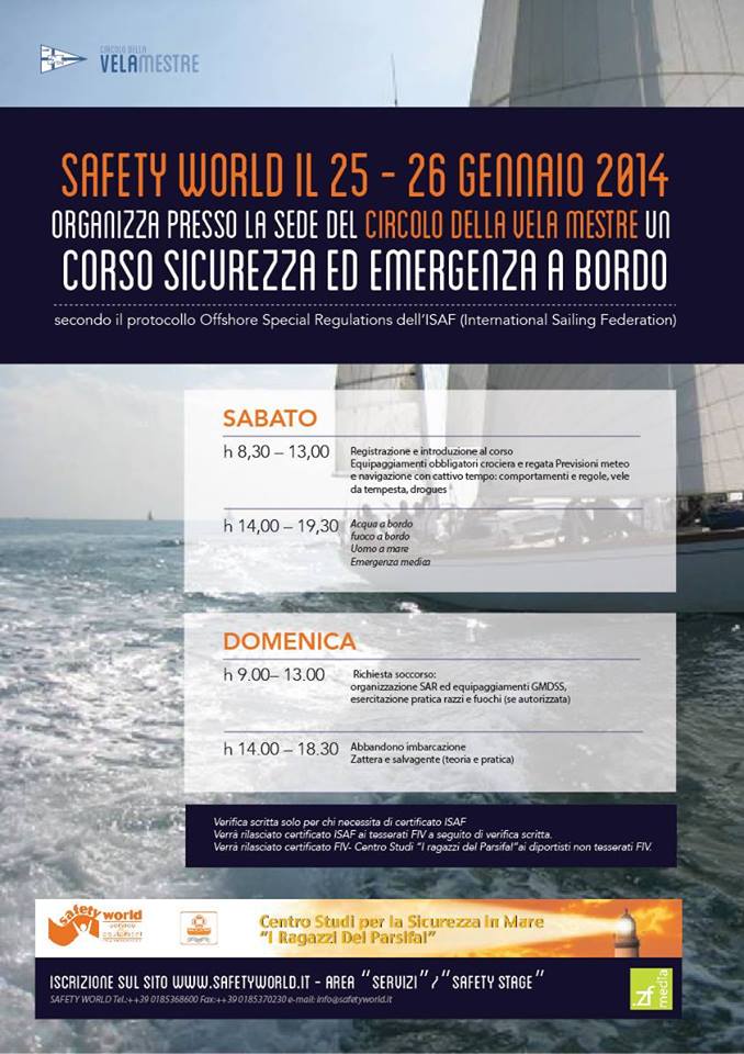 Il Circolo della Vela Mestre organizza un week-end per confrontarsi sulle varie situazioni di emergenza che possono verificarsi a bordo delle nostre imbarcazioni da diporto, tenuto da uno specialista del settore Umberto Verna.