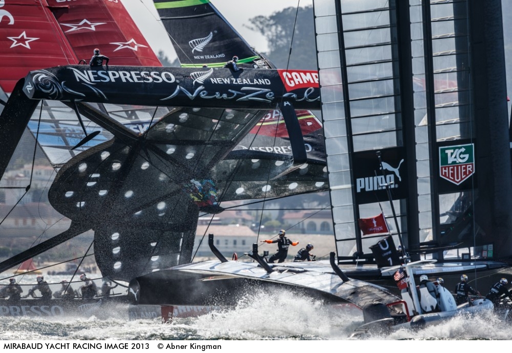 44 anni e padre di due figli , Abner Kingman , è stato premiato per la sua fotografia di Emirates Team New Zealand e Oracle Team USA , catturata durante la gara 8 della 34esima Coppa America a San Francisco ( USA) . L’inquadratura coglie il momento preciso in cui Oracle Team USA ha assunto l’iniziativa su Emirates Team New Zealand , quando ETNZ si trova quasi capovolta: il punto di svolta nella Coppa della scorsa Coppa America.