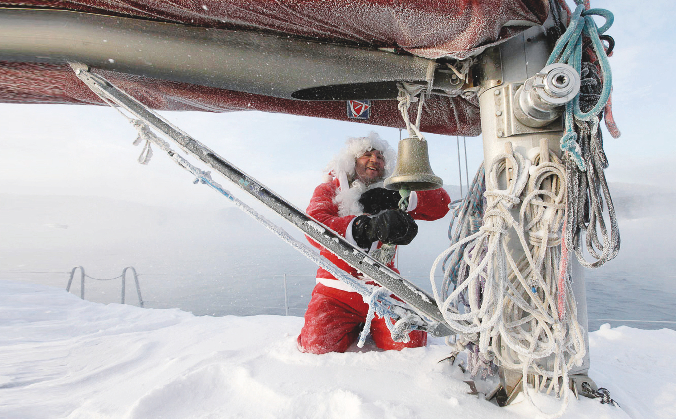 Sicuramente il nostro non è un Babbo Natale tradizionale, con slitta e renne, ma che giunge a portare i doni con una vecchia barca d’epoca vestito con una grande cerata rossa e una lunga barba bianca sporca di sale. E il sacco dei doni?? Beh sicuramente sarebbe stagno! Ma i doni?? Non ce mattina del 25 dicembre senza doni sotto l’albero, ma non uno di quelli classici, un abete finto o vero che sia, bensì un vero e proprio albero di una barca a vela!