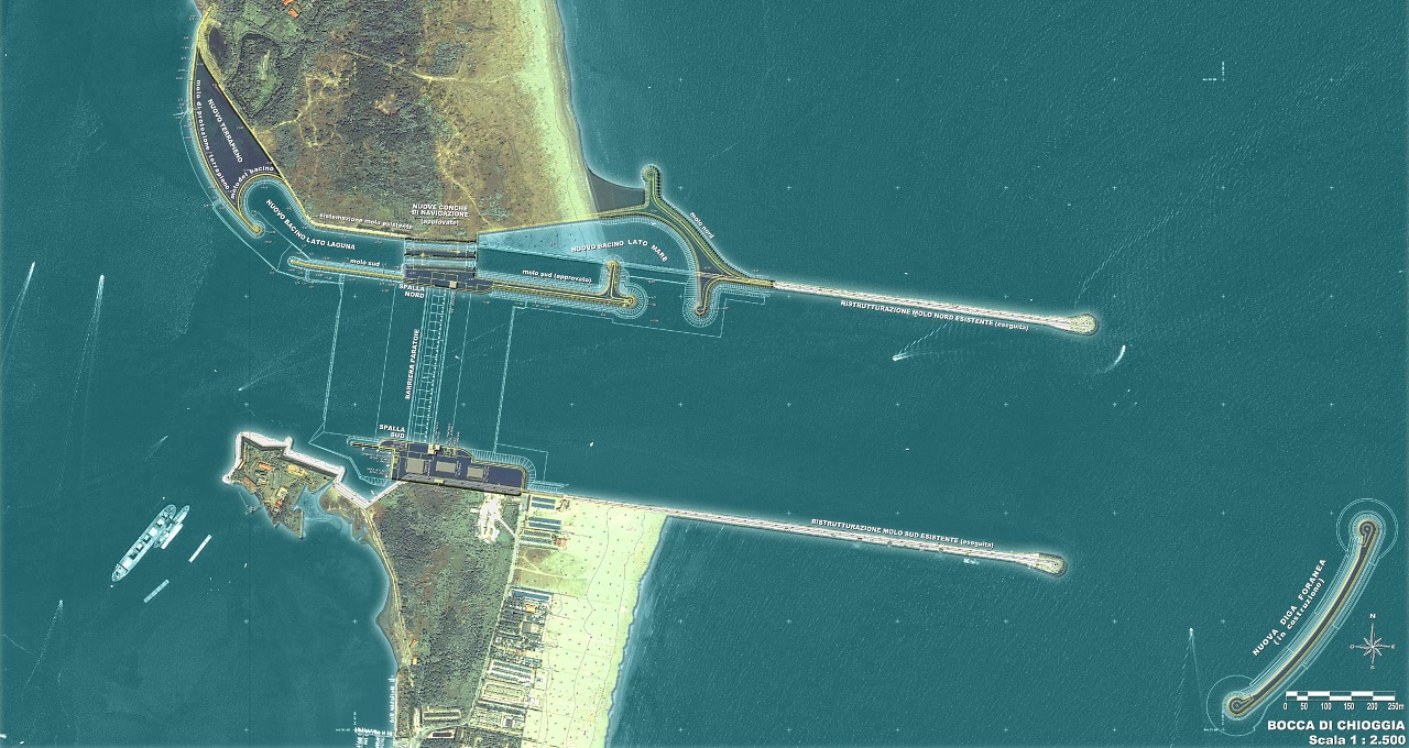 Secondo il Consorzio Venezia Nuova i lavori sono giunti all’80 per cento del loro avanzamento. Posati i cassoni nella bocca di Lido e di Treporti – qui vista la larghezza di 900 metri del varco le dighe sono divise in due schiere da 19 e 20 paratoie, collegate al centro alla nuova isola artificiale del bacàn – in fase avanzata l’operazione anche a Malamocco. Adesso tocca a Chioggia. E come successo un anno fa a Treporti i pesanti cassoni saranno fatti galleggiare e poi sistemati sul fondo. «Operazione delicata, perché devono essere perfettamente allineati, con tolleranza di pochi millimetri», dicono i tecnici. Un panorama imponente, quello di Chioggia. Anche se la bocca di Chioggia è la più piccola e in qualche modo la più «facile».