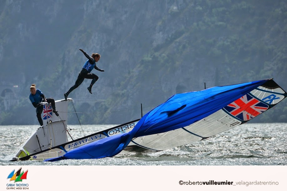 Nel campo di regata di Malcesine, in cui sono impegnati i catamarani misti Nacra 17, ci sono state condizioni inizialmente sui 10 nodi, salite dalla seconda regata a 15 regolari, anche se con qualche, inevitabile, salto del vento a sinistra. Soddisfazione da parte di atleti per una giornata di belle e combattute regate: nella classifica generale ci sono diversi equipaggi incappati in un OCS (partenza anticipata) ed essendo previsto un solo scarto, per loro non è più possibile fare errori per poter raggiungere la medal race, la finalissima dei primi 10 prevista domenica.