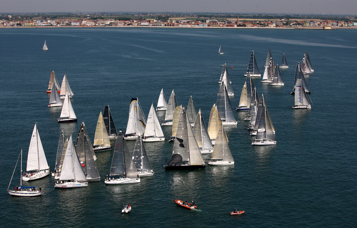 Dopo poche miglia dalla partenza, l’ingresso di un vento termico dal secondo quadrante intorno agli otto nodi ha gonfiato le vele di prua e la flotta ha preso il largo in direzione di Grado.