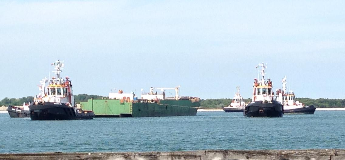 Nel tardo pomeriggio di ieri nemmeno l’intervento di due rimorchiatori e uno spintore era riuscito a far spostare l’imbarcazione. Quest’oggi invece sono dovuti intervenire quattro rimorchiatori (in supporto sono arrivati da Venezia) per cercare di disincagliarla; alle 18 di oggi la nave però non si era mossa di un centimetro.