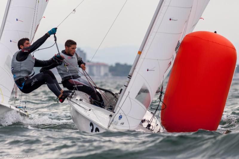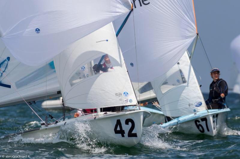 Tra le ragazze (23 iscritti) – ricordiamo che la manifestazione è aperta a velisti Under 22 – è netta la supremazia di Maelenn Lemaitre e Aloise Retornaz (oggi ufd-6-2) che dopo quattro successi di giornata hanno gestito la situazione, mantenendo un buon margine sulle inglesi Lavery-Brickwood (2-1-8), ora forti di un vantaggio rassicurante sulle israeliane Zamet-Tamir (6-4-4), promosse in zona podio da tre parziali di alta classifica. Perdono posizioni Di Salle-Dubbini (4-14-15) che, pur confermandosi migliori tra le azzurre, occupano ora la nona piazza.