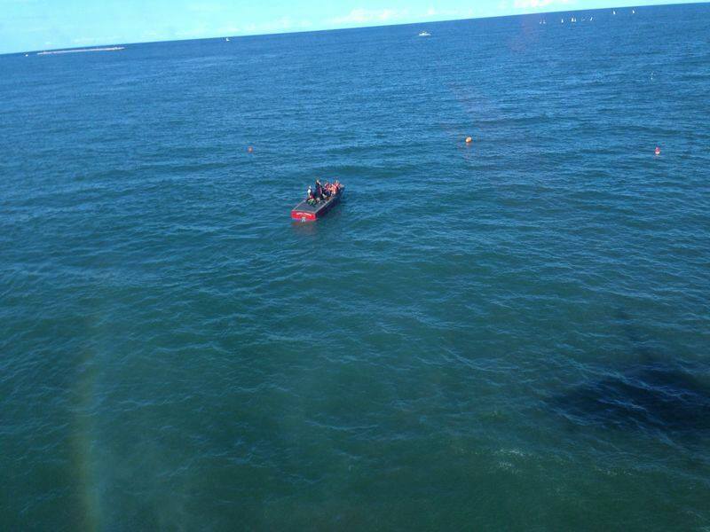 Secondo quanto riferito da alcune persone sulla spiaggia, sembra che solo due persone siano tornate a terra, perdendo di vista la terza persona.