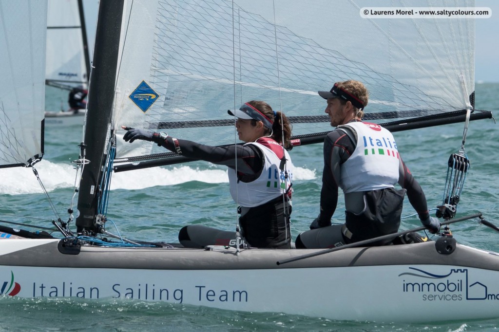 Giornata altalenante per Vittorio Bissaro e Silvia Sicouri, che ottengono un 14mo e 11mo nelle prime due prove, ma chiudono la serie del giorno con una vittoria: nella classifica generale sono secondi (1-4-1-3-4-14-10-1), dietro gli spagnoli Martinez-Pacheco e davanti ai norvegesi Norregaard-Just, e domani scenderanno in acqua per la Medal race. Finale in crescendo per Lorenzo Bressani e Giovanna Micol, 17mi (13mi tra gli europei), mentre Federica Salvà-Francesco Bianchi chiudono 25mi, Francesco Porro-Caterina Marianna Banti 28mi, David Bondì-Alessandra Angelini 38mi, Vincenzo Sorrentino-Giorgia Catarci 39mi, Francesco Sabadini-Marcella Mamusa 41mi e Matteo Ferraglia-Germana Tognella 56mi.