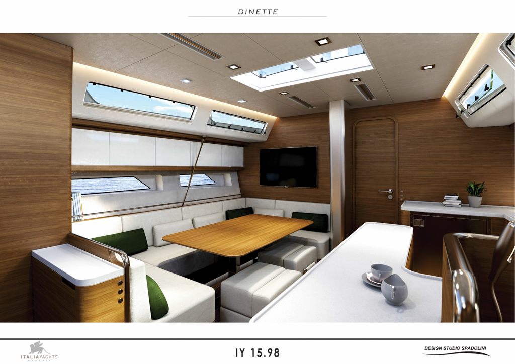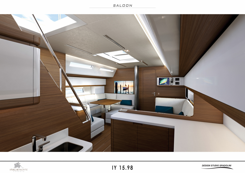 Nato da una collaborazione tra la matita dello Studio Spadolini e Italia Yachts Design Team il 15,98 con una lunghezza fuori tutto di 16,60 mt (55piedi), un pescaggio di 2,90 mt per una stazza di 15800 Kg mira a stupire ancora una volta il mondo degli appassionati di barche sportive era stato presentato in anteprima dall’amministratore delegato di Italia Yachts, Franco Corazza, durante il Festival de la Plaisance di Cannes, dal 10 al 15 Settembre scorso.