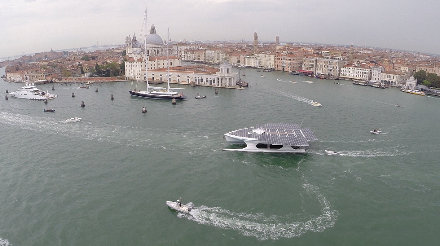 Sul tema è intervenuto anche l’ammiraglio Tiberio Piattelli della Capitaneria di porto. “La normativa – ha confermato – in effetti non regola ancora bene questo tipo di imbarcazioni per l’Italia. Spero anch’io che questa barca stimoli gli organi competenti a spingere per portare avanti questo tipo di attività“. L’arrivo di PlanetSolar a Venezia, unica tappa italiana dopo la campagna 2014, da’ il via a un percorso semestrale condiviso tra il catamarano solare e la Città di Venezia che, grazie alla partnership con ‘Vento di Venezia’ permetterà l’organizzazione nel prossimo inverno di visite ed eventi coerenti con la mission di sensibilizzazione sulla sostenibilità ambientale e sull’innovazione tecnologica, a partire dalla consegna a bordo, domani, del premio ‘Green Drop’, in occasione della Mostra del Cinema.