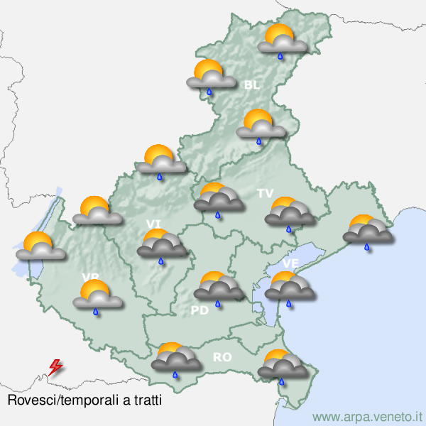 Una depressione è in spostamento dall’Europa settentrionale ai Balcani e fino a domenica interesserà il Veneto; il tempo sarà instabile venerdì e variabile in seguito, con situazione non prevedibile dettagliatamente dal punto di vista spaziale e temporale. Tra lunedì e martedì temporanea fase anticiclonica, le giornate saranno in prevalenza soleggiate.