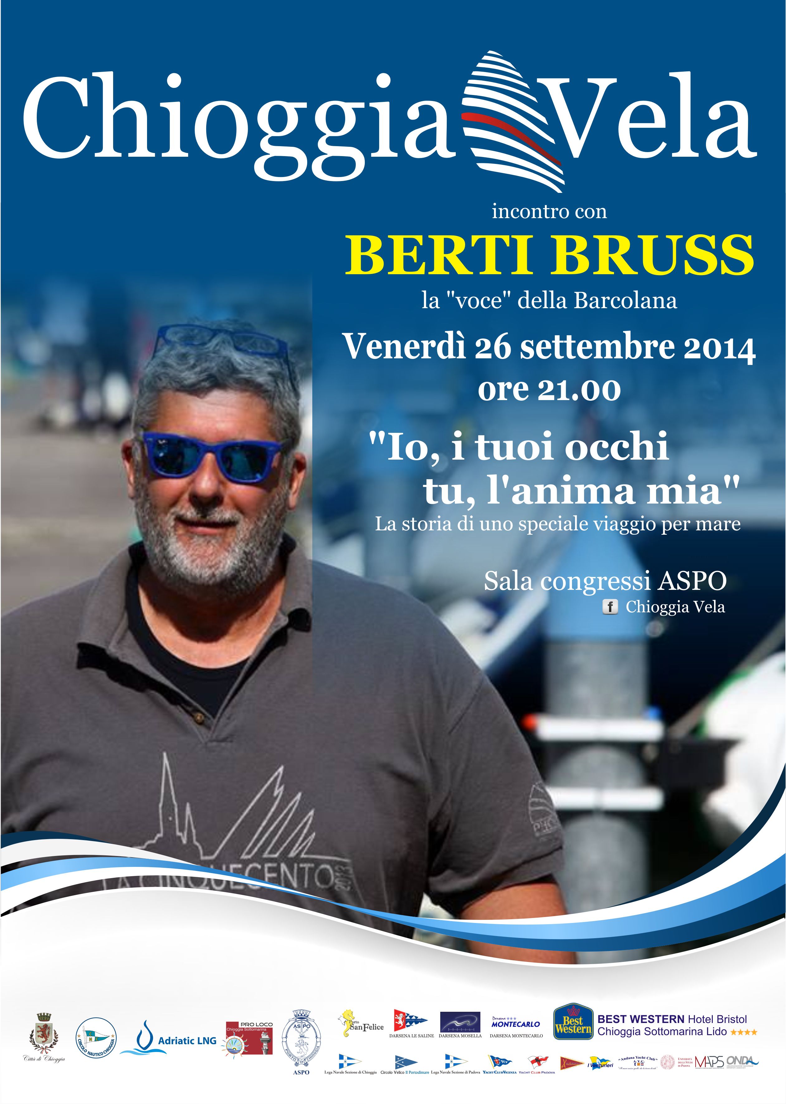 Tutto questo ci racconterà Berti Bruss venerdì 26 settembre ore 21.00 sala congressi ASPO per la serata della 3^ edizione di Chioggiavela dopo i “20 anni di Coppa America dal Moro di Venezia a Venezia” con Enrico Zennaro e Dario Malgarise e “Vento di Sardegna sulla Ostar 2013” con Andrea Mura; ancora una serata entusiasmante prima delle regate di Chioggiavela.