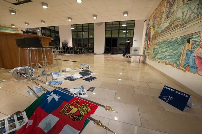 Il maltempo si abbatte su Chioggia e in modo patricolare sul porto vecchio, a Isola Saloni, dove proprio nella serata di ieri era in programma la cerimonia di apertura di Ottobre Blu, la manifestazione, vera e propria “festa del mare”, evidenzia il mondo marinaresco attraverso la cultura, lo sport, l’arte e l’imprenditoria.