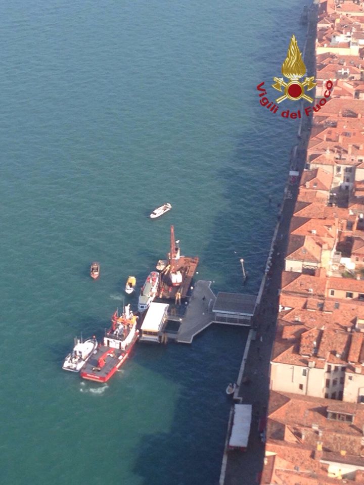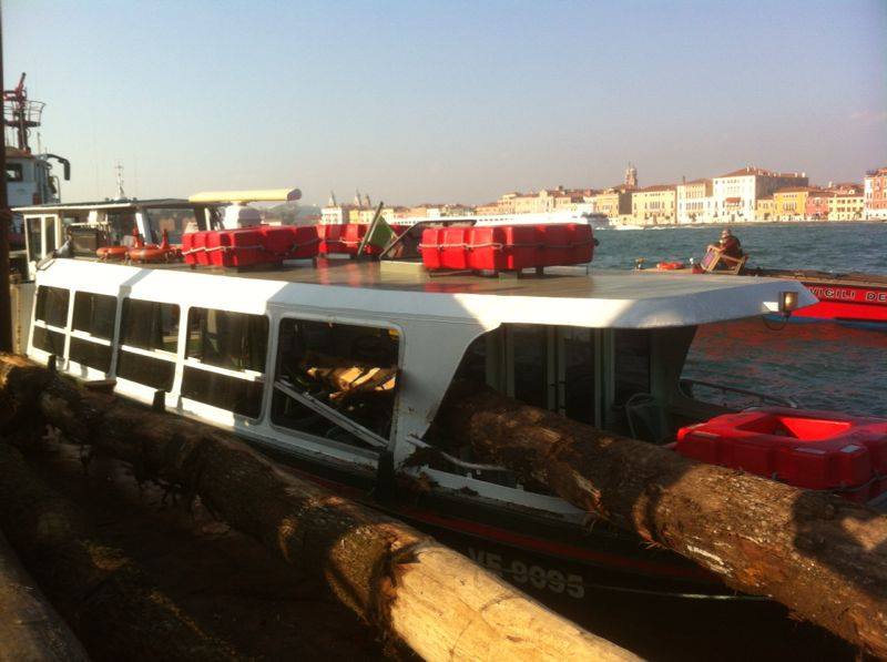 Incidente all’altezza dell’imbarcadero della Palanca della Giudecca a Venezia Per cause ancora al vaglio delle forze dell’ordine, si sarebbe verificata una collisione tra una bricola movimentata da una gru battipali e il natante Actv.