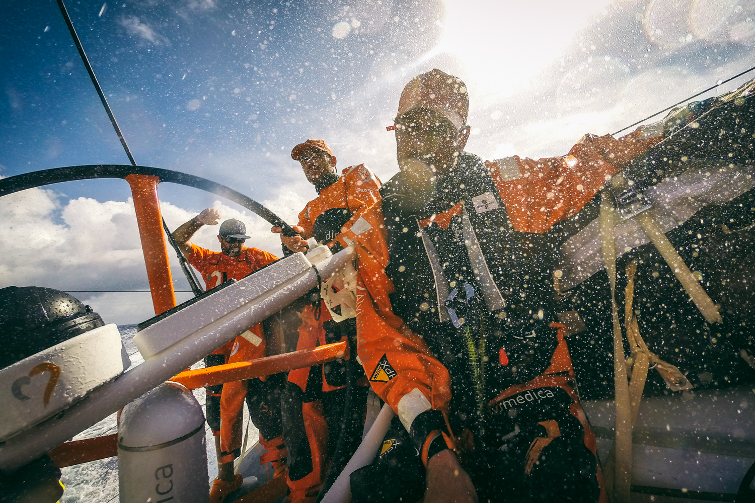 La flotta si è divisa in tre gruppetti, in testa Abu Dhabi Ocean Racing e Team Brunel distanziati di appena 34 miglia stanno correndo veloci, ma la tempo stesso si controllano. Come evidente dal cartografia elettronica, oggi gli equipaggi leader si sono marcati per portarsi nella zona più al vento e dunque in controllo. Tutti devono spingersi più a sud prima di fare la mossa decisiva, e dunque gli angoli del triangolo verso Città del Capo si ampliano. Inoltre, gli inseguitori potrebbero trovarsi nella condizione di “tagliare”, coprire meno strada e ridurre lo svantaggio.