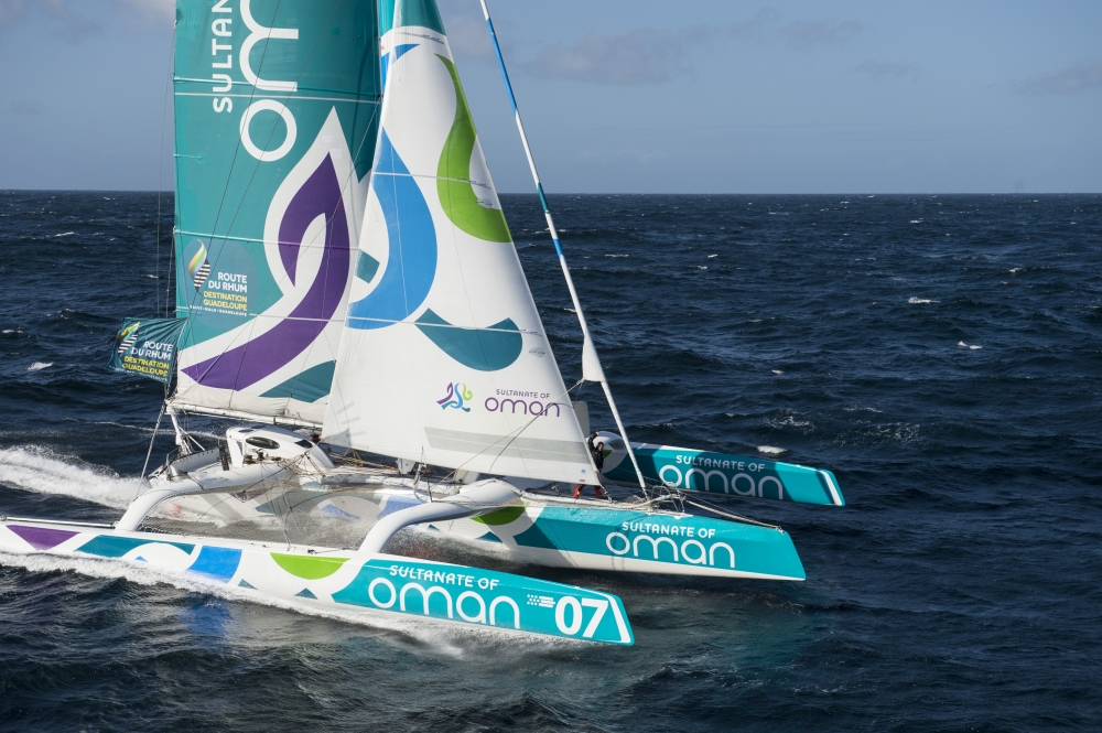 Proprio di fronte allo stand Omanita è ormeggiato il trimarano di 70 piedi che veste i colori del Sultanato dell’Oman. L’imbarcazione è tenuta in perfette condizioni grazie al lavoro quotidiano dello shore crew e dei velisti Omaniti a supporto dello skipper francese Sidney Gavignet, che attraverserà l’Atlantico in solitario a bordo del trimarano, percorrendo le 4,471 miglia nautiche che separano St. Malo in Francia da Pointe-a-Pitre in Guadalupa.