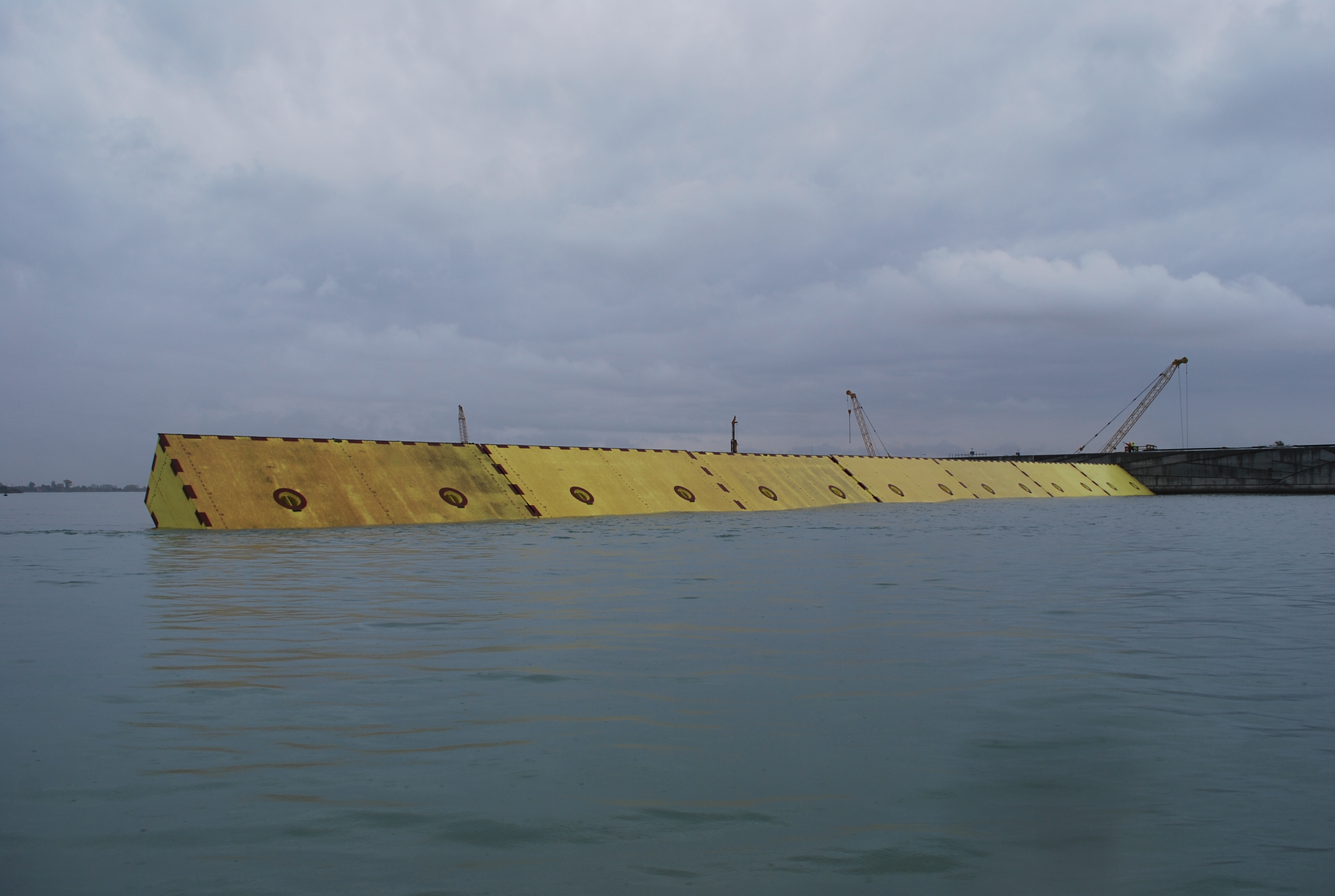 Alzate altre 7 paratoie del Mose alla bocca di porto di Lido per verifiche tecniche. Il test di sollevamento progressivo è funzionale alla chiusura dell’intera barriera di 21 paratoie nel canale di Lido Treporti già programmata durante il mese di novembre.