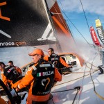 Dopo la spettacolare partenza di ieri pomeriggio nella Table Bay, la prima notte di navigazione è trascorsa con la flotta impegnata a passare il Capo di Buona Speranza e poi a navigare lungo la costa meridionale del Sudafrica sempre di bolina, ma in condizioni migliori di quanto ci si aspettasse, con un vento intorno ai 10/15 nodi. Il temuto, e previsto, cattivo tempo dunque non si è materializzato e la situazione è stata piuttosto tranquilla, anche in termini tattici. Le barche sono rimaste sostanzialmente in gruppo, con Team Alvimedica posizionato più a nord in un gruppetto insieme a MAPFRE e ai franco/cinesi di Dongfeng Race Team, mentre Team Vestas Wind in una prima fase ha scelto l’opzione meridionale, per portarsi poi al centro, perdendo qualche miglio, come hanno fatto le veliste di Team SCA. Abu Dhabi Ocean Racing e Team Brunel sono state le barche che si sono spinte più a sud in cerca probabilmente di aria più fresca, ma se nel caso dell’equipaggio leader della classifica provvisoria, ciò ha pagato, meno positivo è stato il risultato per Team Brunel, sesto all’ultimo rilevamento con poco più di sette miglia di distacco.