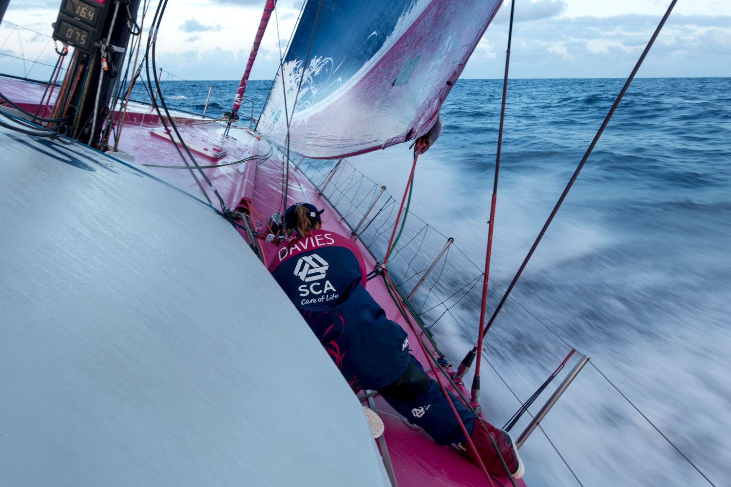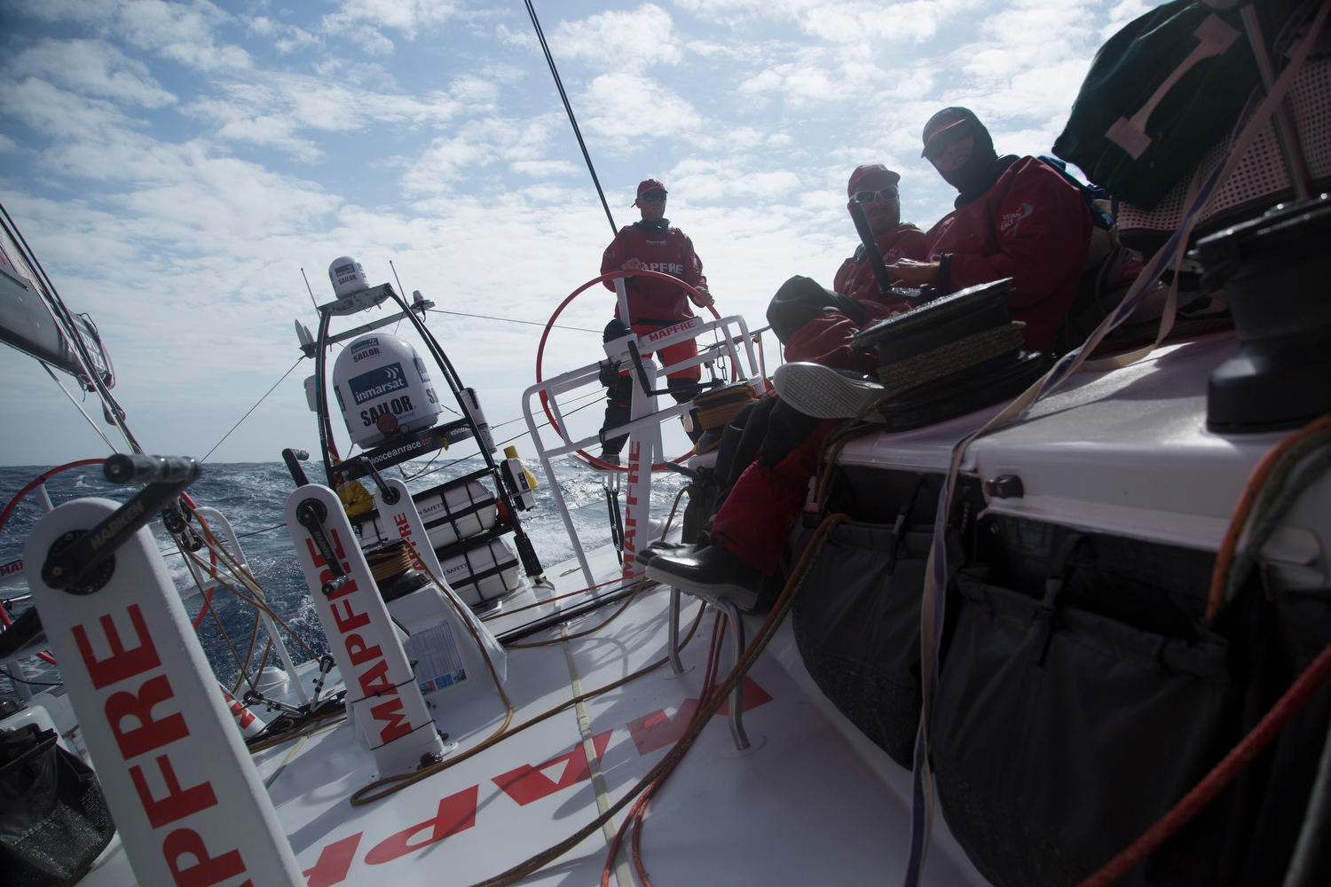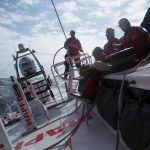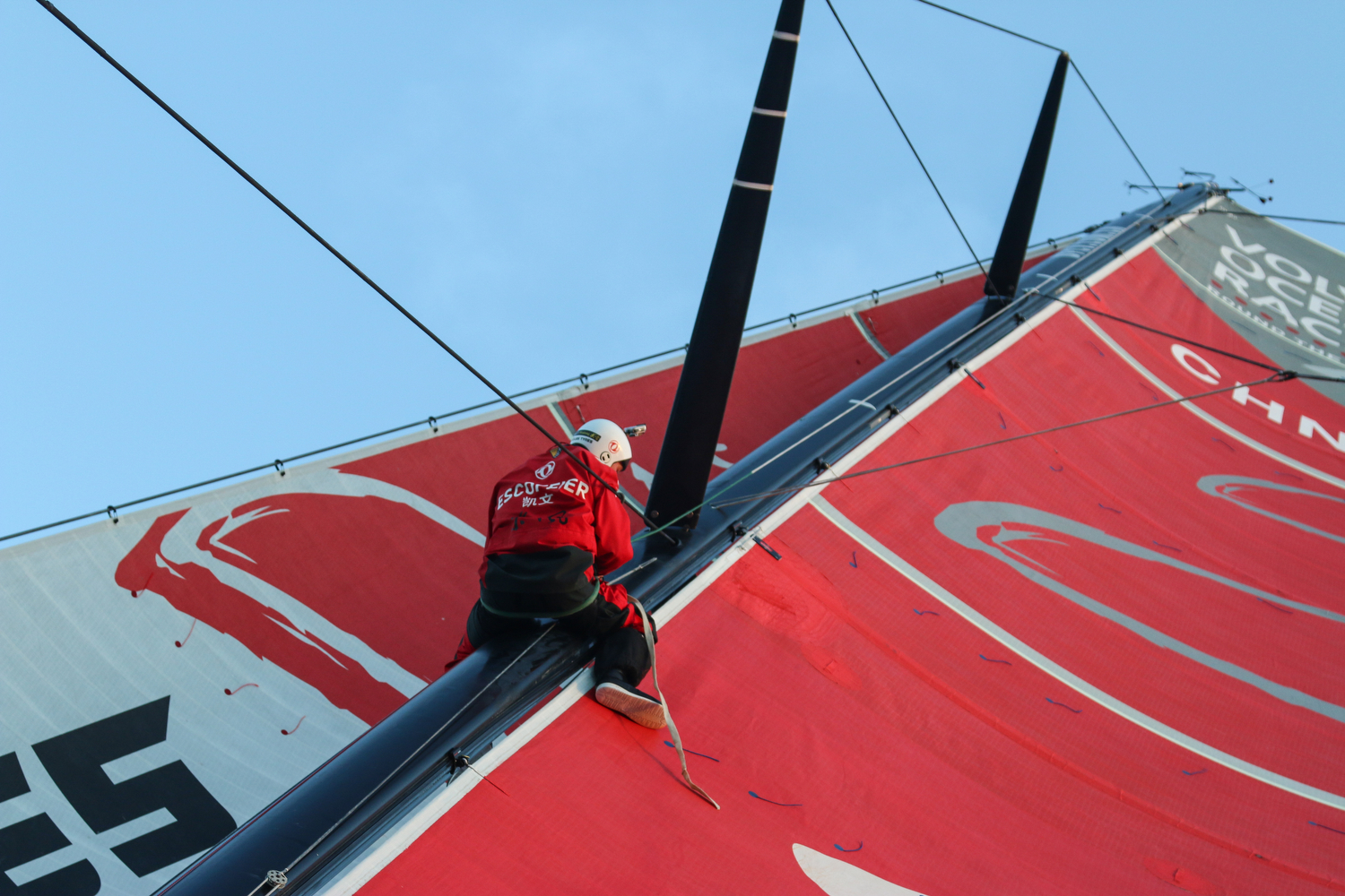 Il team franco/cinese Dongfeng Race Team è stato costretto ad effettuare una prima e temporanea riparazione in alto mare alla rotaia della randa, danno che avrebbe potuto fermare la sua corsa, ma che grazie a un’intervento di emergenza dell’equipaggio, e in particolare del prodiere Ken Escoffier, per il momento è tenuto sotto controllo in attesa che le condizioni migliorino. La rotaia, montata longitudinalmente sull’albero (che è alto 30 metri) permette di issare o ammainare la randa. “Pensate alla rotaia di una tenda” ha spiegato per semplificare Mark Covell, Watch Producer di Volvo Ocean Race, medaglia d’argento nella Star a Sydney 200 e imbarcato come media crew member in una delle precedenti edizioni del giro del mondo. “Se si rompe significa che qualcuno sarà costretto a salire sull’albero per spostare manualmente la vela. Nelle condizioni attuali, è una manovra di certo non semplice e potenzialmente pericolosa. Di sicuro però è un problema che va risolto.”