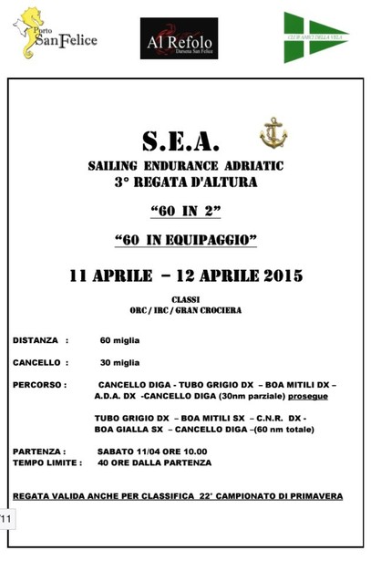 Tra i vari appuntamenti il più importante è rappresentato senza dubbio dalla ventiduesima edizione del Campionato di Primavera, organizzato a Chioggia in collaborazione con il Circolo Velico il Portodimare. Novità assoluta della stagione 2015 è invece rappresentata dalla 60 Miglia, da percorrere in equipaggio o X2.