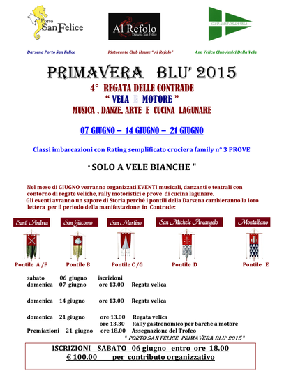 Il Club Amici della Vela presenta la sua stagione sportiva 2015. Un fitto calendario di eventi che vede impegnato il sodalizio da marzo fino a giugno.