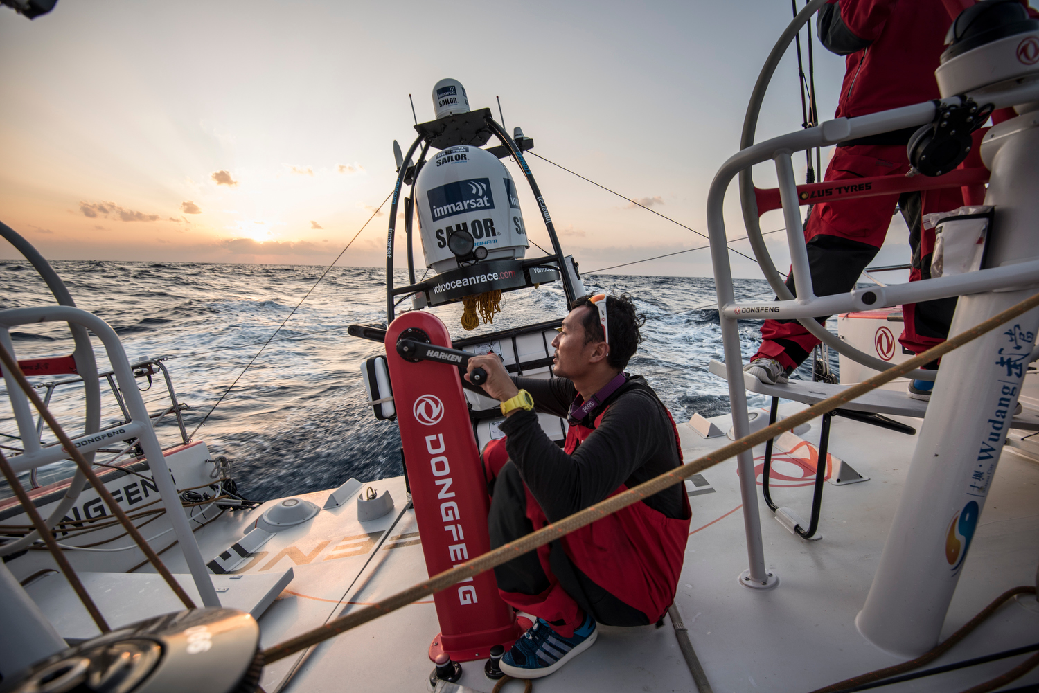 L’equipaggio di Dongfeng Race Team continua a mantenere un solido margine su Team Brunel, all’ultimo rilevamento di poco inferiore alle 45 miglia e continua anche a far registrare le velocità medie e di punta più alte di tutta la flotta. Anche se si tratta in alcuni casi di frazioni di nodo, un vantaggio consistente potrebbe significare un buon guadagno nella fase successiva della tappa, il tanto temuto passaggio dello Stretto di Malacca. Bisogna però notare che i team non ricevono i report ogni tre ore, come il pubblico sul web, ma ogni sei ore e quindi i giochi tattici e strategici sono fatti anche sulla base di una buona dose di supposizioni. Quello che conta è portare la barca al massimo, regolare di continuo le vele, essere attenti e puntare al 100% delle prestazioni. Dopo un’accelerazione ieri, oggi la flotta è tornata alle “consuete” condizioni di vento leggero causate dalla formazione di un sistema anticiclonico, molto difficili da interpretare per i sei navigatori.