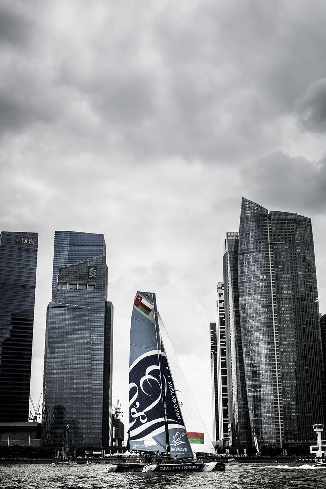 The Wave, Muscat e il suo skipper Leigh McMillan sono partiti con il piede giusto in questo avvio di stagione 2015 delle Extreme Sailing Series. Nel cuore di Singapore il team omanita ha gestito al meglio le condizioni del campo di regata, vincendo tre delle otto prove disputate e chiudendo la giornata in testa alla classifica provvisoria. La sfida è come sempre molto serrata nella parte alta della classifica e il resto della flotta non concederà punti facili a McMillan nei prossimi tre giorni di regate stile stadio. In banchina McMillan ha commentato così il primo giorno di regate “E’ stato bello tornare in acqua con tutti i nuovi team di quest’anno. Le condizioni erano davvero impegnative, agli estremi di quello che avevamo già visto qui a Singapore, in particolare in termini raffiche di vento.”