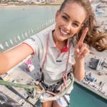 Persino gli atleti più preparati avrebbero qualche perplessità a scalare l’albero di una barca a vela, eppure la ventiduenne regina di bellezza di origine sudafricana, non si è fatta problemi a issarsi a oltre 30 metri per raggiungere la cima dell’albero di Dongfeng Race Team, l’attuale leader della classifica del giro del mondo a vela,