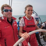 Rolene Strauss, che si è aggiudicata la corona di più bella del pianeta lo scorso dicembre a Londra, è stata aiutata dall’equipaggio a salire sull’armo, la cui altezza è pari a sei giraffe messe una sopra l’altra. La manovra è durata circa due minuti, dopo di che Rolene a potuto godere di una splendida vista dall’alto del porto e del race village di Sanya, sull’isola tropicale di Hainan, in Cina. “E’ stato bellissimo” ha detto. “Una vista incredibile. Mi è piaciuto uscire in mare e mi sono davvero innamorata di Sanya. Mi è proprio sembrato di stare in cima al mondo. Mi sono tenuta ben stretta all’albero, guardato giù verso la barca e poi ho scritto la frase “un mondo, una forza”. Se l’equipaggio lavorerà insieme, sarà più forte e andrà bene nella regata.”
