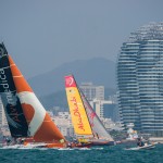 La prova si è svolta su un percorso a bastone di poco più di sette miglia totali, con una decina di nodi vento e fra due ali di barche spettatori e si è conclusa in poco meno di un’ora. Il comitato di regata ha dato il segnale dello start in perfetto orario e, a eccezione degli spagnoli di MAPFRE in ritardo, tutta la flotta si è lanciata sul percorso. Team Alvimedica ha condotto per tutta la prima fase, girando in testa alla prima boa e alla seconda, per poi dover lasciare la leadership a Abu Dhabi Ocean Racing, tallonato da Team Brunel. Ma Dongfeng ha attuato la sua strategia, ed è andato a cercarsi un vento un poco più fresco sul lato sinistro del campo di regata, risalendo in prima piazza e mettendo acqua fra sé e gli avversari tanto che alla quarta boa, il vantaggio era salito a oltre 200 metri. Abu Dhabi Ocean Racing ha fatto di tutto per cercare di recuperare, accorciando la distanza fino a 50 metri al penultimo giro di boa, ma Caudrelier e il suo equipaggio non hanno ceduto alla pressione e hanno colto una meritata vittoria, per la gioia dei numerosi fan cinesi presenti.