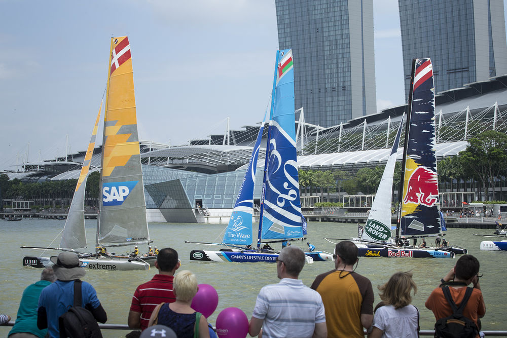 Migliaia di spettatori durante il week end hanno potuto seguire l’azione a distanza ravvicinata nel Marina Bay, sotto lo sguardo dei grattacieli di Singapore. L’ultimo giorno di regate ha visto i nove team internazionali affrontarsi in condizioni perfette, con un vento sui 15 nodi di intensità e raffiche fino a 21 nodi, che hanno dato modo di offrire il migliore spettacolo targato Extreme Sailing Series.