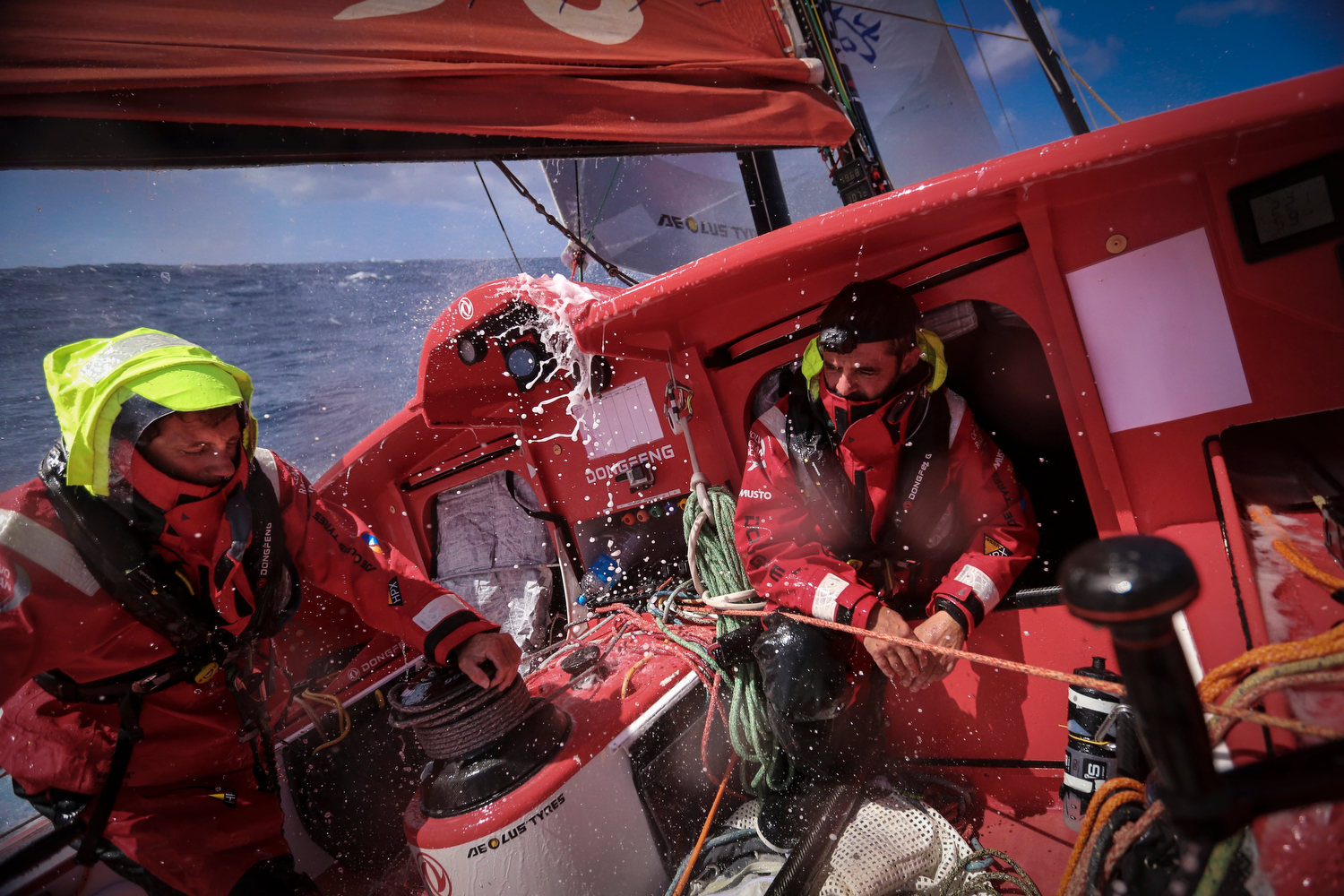 MAPFRE e Dongfeng Race Team sono a nord-est del team guidato da Ian Walker, mentre l’equipaggio femminile di Team SCA ha optato per un approccio più neutrale e si trova nel mezzo, ma fa registrare grosso modo le stesse velocità medie di Abu Dhabi Ocean Racing. L’onboard reporter Anna-Lena Elled scrive oggi nel suo blog: “La barca è sballottata, l’acqua di mare arriva in coperta e spesso anche sottocoperta. C’è condensa dappertutto e la temperatura sta già scendendo. Le condizioni di navigazione però sono spettacolari, con queste grandi onde, abbiamo navigato 12 ore molto veloci al lasco, alcune ragazze sono già a proprio agio altre soffrono un po’. La partenza dolce è quasi ormai un ricordo.”