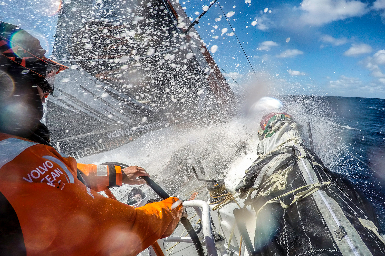 Prime ore intense per la flotta della Volvo Ocean Race, impegnata nella quinta tappa, partita martedì da Auckland alla volta di Itajaì, in Brasile. Le condizioni di mare e vento stanno mettendo alla prova la resistenza dei 57 velisti, con aria superiore ai 30 nodi e onde dai 5 ai sei metri.