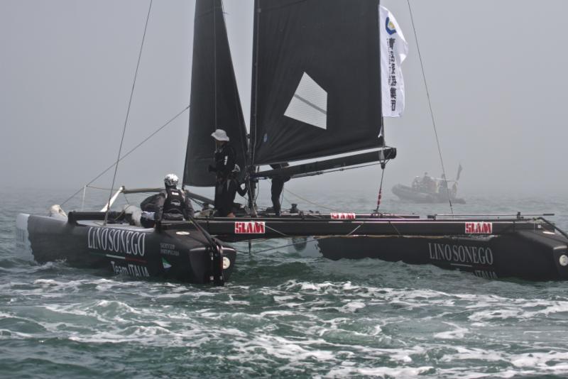 Giornata invernale per il primo giorno di regate dell’Act3 delle Extreme Sailing Series di Qingdao (China). La giornata si apre con il sole e la presentazione dei team alla stampa e alle autorità, una conferenza gremita e un attenzione per l’evento da parte dei media nazionali al di sopra di ogni aspettativa. Alle 13,40 i team prendono il mare, seguiti da un folto numero di barche ospiti, curiosi ed appassionati di questo sport, del resto Qingdao è la città della vela, in una nazione per numero di abitanti ed iscritti alla federazione nazionale vela che non ha eguali. Purtroppo nell’arco di qualche minuto, quando le barche iniziano a “scaldare le vele”, arriva in pochi istanti una fitta nebbia che obbliga il Comitato di Regata a far rientrare, in stand by le imbarcazioni a terra. I team scendono dai lo extreme40 dubbiosi che si possa tornare in mare, il primo giorno di regata sembra compromesso. Si attende per quasi due ore che la situazione migliori, il tempo passa e si avvicina il “time limit”. Alle 16 arriva il perentorio “no race today”, tutto rimandato a domani, un occasione persa per poter veleggiare in questo specchio d’acqua che malgrado le condizioni così “strane” sembra un buon campo di regata, nel warm up di ieri si sono viste delle belle prestazioni.