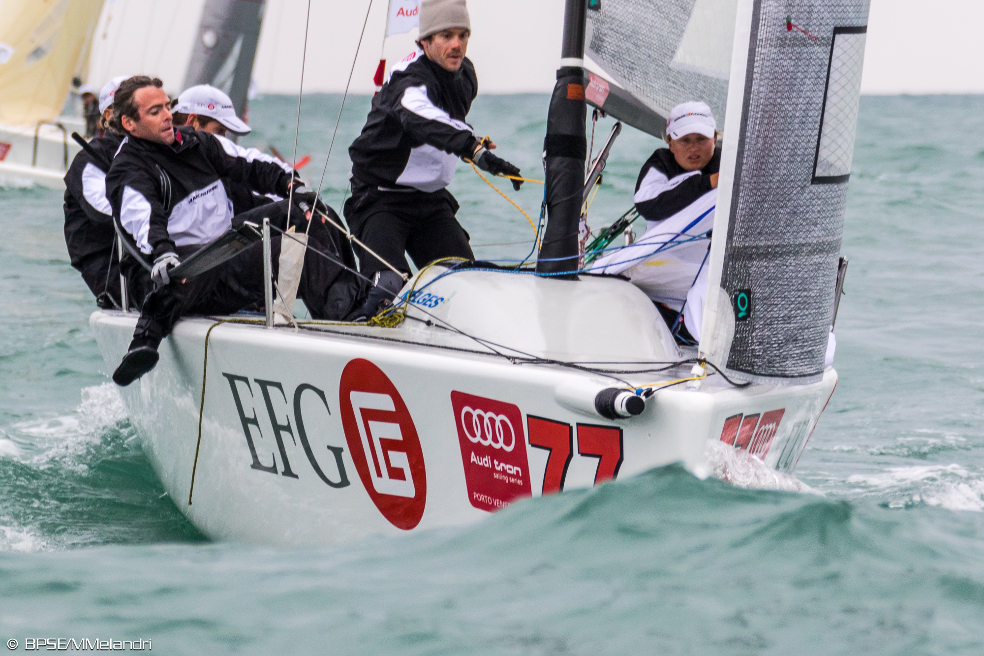 Dopo cinque prove, il testa a testa tra EFG (oggi 3-2) di Chris Rast e Audi tron (1-3) di Riccardo Simoneschi resta più aperto che mai: impossibile prevedere chi sarà incoronato King of the Poets della classe Melges 24.