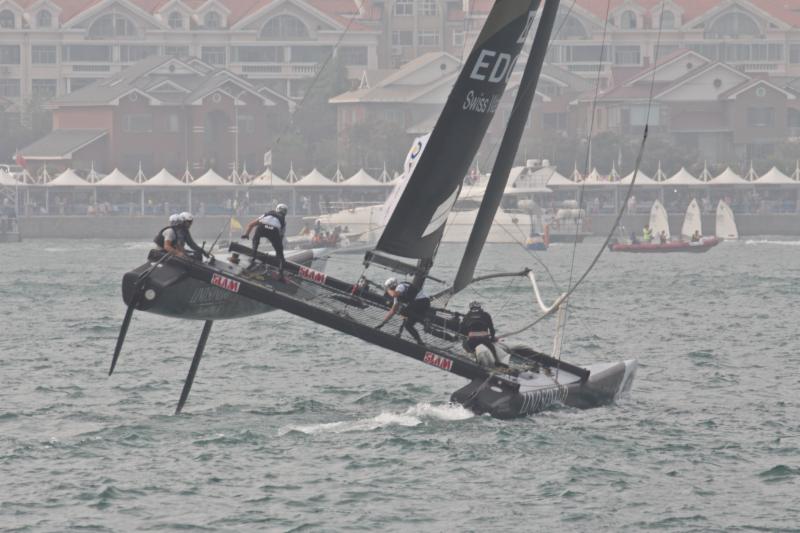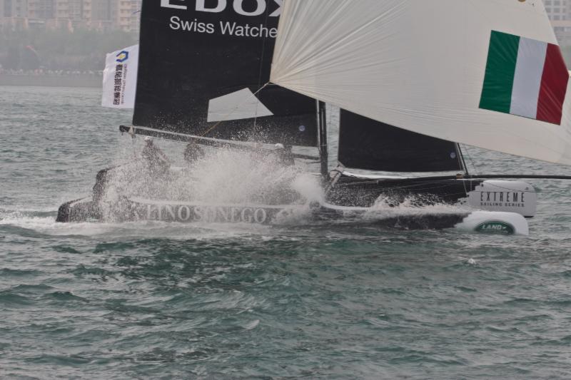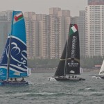 La domenica chiude la quattro giorni di regate dell’Act3 delle Extreme Sailing Series di Qingdao (China) anche se solo tre si sono consumate in mare, visto che il giorno di apertura è stato annullato per nebbia. Una tappa quella cinese dove le previsioni di venti forti facevano prevedere più adrenalina, mettendo in apprensione coloro i quali si occupano delle regolazioni degli alberi e del settaggio in generale della barca. Il vento già in aumento dalla mattina ha fatto vedere qualche “fly” spettacolare di questi catamarani, ed ha consentito al Comitato di Regata di portare a casa altre cinque prove, per un totale di 22 disputate all’interno del Racing Stadium in quella che a tutti gli effetti è la città della vela per la Repubblica Popolare Cinese.