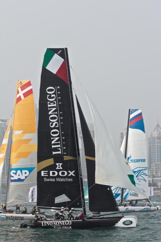 Race19: lieve calo, era previsto, si parte in gruppo ma dopo un lato il comitato sospende. Si riparte: vento che gira come da previsione dai quadranti nord orientali, si attende il rinforzo. Regata molto lenta che vede i catamarani andare lentamente verso la boa di bolina, Gazprom Team Russian prende la testa senza tregua per gli altri, il Lino Sonego Team Italia cerca di non perdere il treno dei primi, mantenere il vantaggio sugli inglesi è fondamentale.
