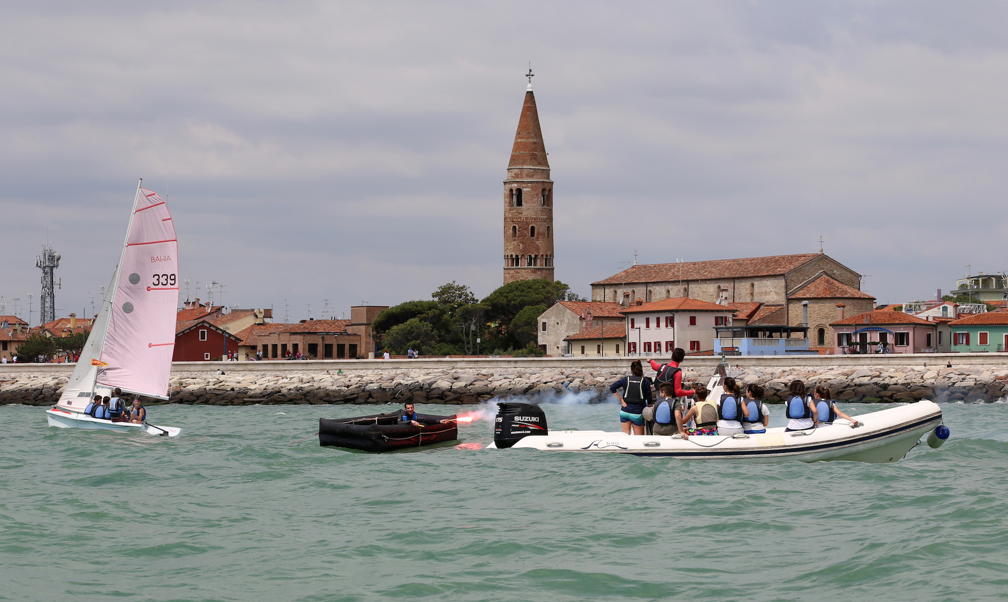 L’istruttore Gian Alberto Marcorin ha fatto rotta immediata verso una zattera (che era ormeggiata per l’occasione in vicinanza della Chiesa della Madonna dell’Angelo) e dalla quale era partito il razzo di richiesta soccorso, verificando che a bordo si trovava un naufrago. L’istruttore ha quindi incaricato uno dei ragazzi di allertare via radio la Capitaneria di Porto, che ha avviato le procedure di recupero.