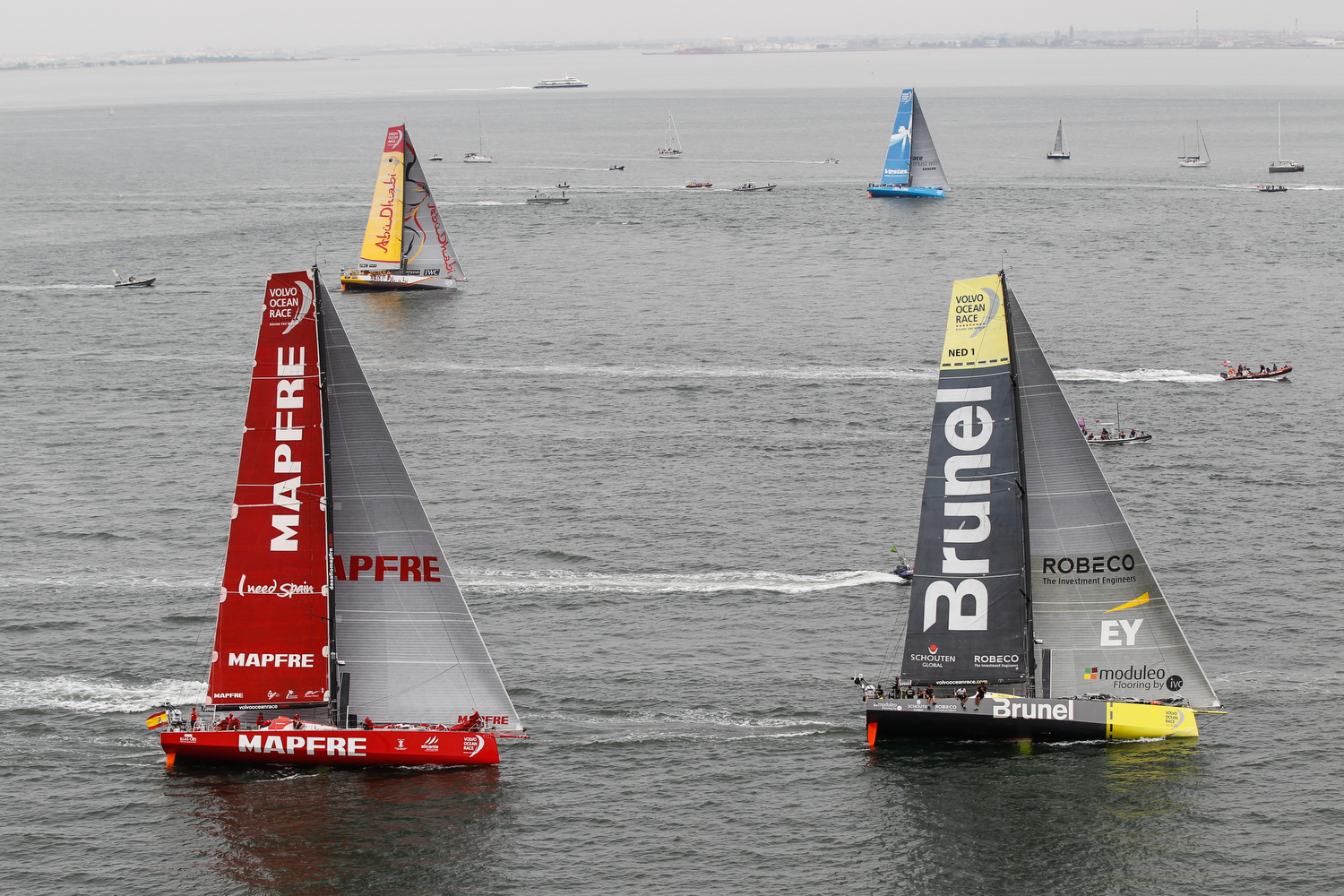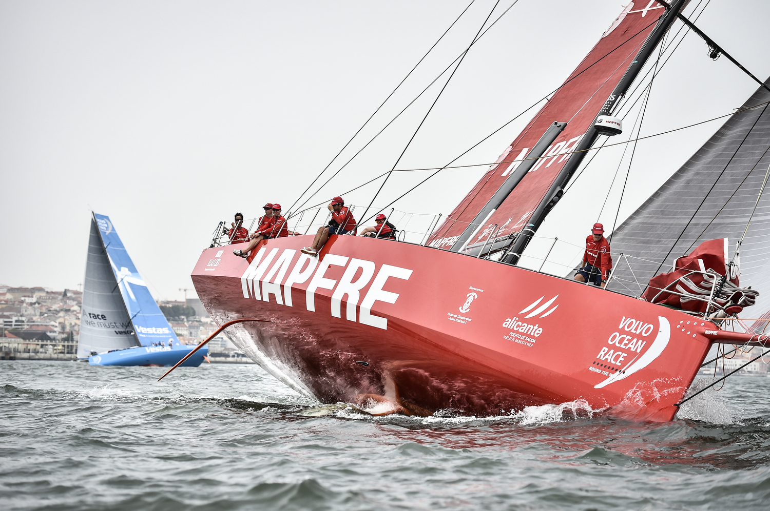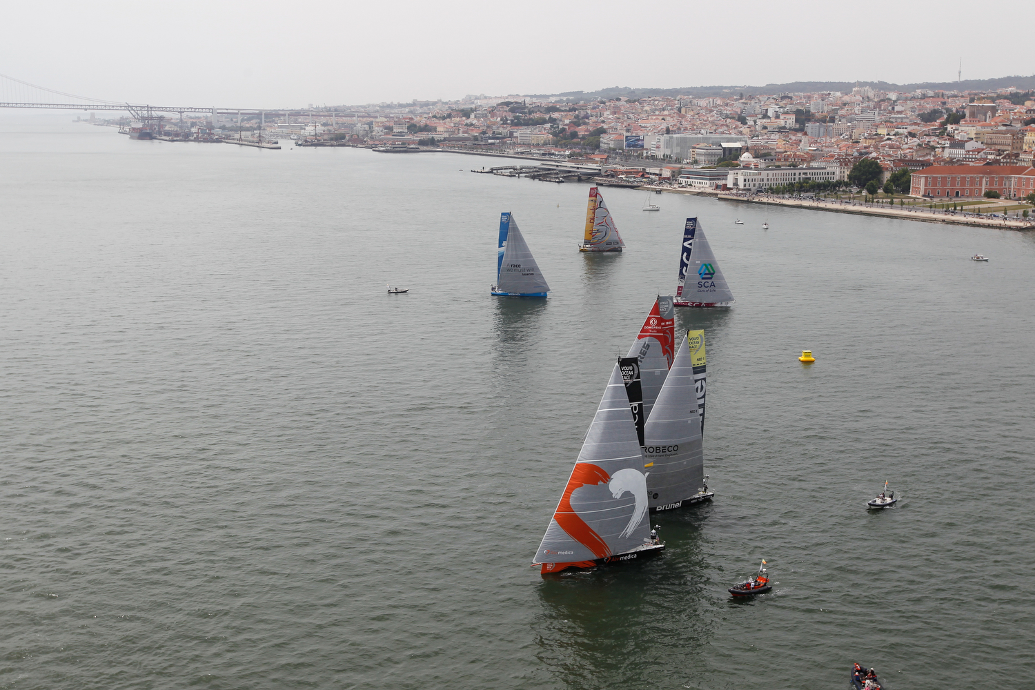 Poco vento, tanta corrente, tanti cambi di posizione. La fase iniziale dell’ottava tappa della Volvo Ocean Race, partita oggi da Lisbona alla volta di Lorient, la località francese sulla costa bretone, è stata caratterizzata da condizioni che hanno creato qualche mal di testa ai 7 equipaggi. Quando sembrava che la situazione fosse ormai definita, il vento leggero e la forte corrente fluviale del Tago si sono messi di mezzo. Gli spagnoli di MAPFRE, che ieri si erano aggiudicati la loro seconda vittoria in una in-port race, infatti sembravano avere abbastanza vantaggio per uscire per primi dall’estuario ma poi una rotazione enorme del vento, combinata con un cambio di direzione delle carte ha fatto riavvicinare gli inseguitori Team Alvimedica e Team Brunel, offrendo agli appassionati una serie di incroci ravvicinatissimi. Poi, le condizioni sono migliorate, con una bella brezza che ha consentito alle sette barche di completare il percorso costiero e sono stati gli olandesi di Team Brunel a guidare la flotta, seguiti da MAPFRE, da Team Alvimedica e da Team Vestas Wind. Quinto Abu Dhabi Ocean Racing, che nelle prime fasi era caduto in coda alla flotta, poi le veliste di Team SCA e infine Dongfeng Race Team, evidentemente non a suo agio su questo campo di regata.