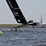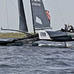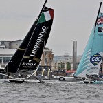 Cronaca della giornata: The Wave, Muscat e Sap Extreme Sailing Team se le danno di santa ragione, complice anche l’intensità del vento salito rispetto a ieri. Il Comitato di regata da l’ordine di ridurre la randa, una mano di terzaroli per tutta la flotta. Lino Sonego Team Italia parte deciso, forse un pò troppo, OCS e regata ad inseguire. Nella seconda arriva l’infortunio al ginocchio di Tom Buggy, il forte prodiere inglese, che rimarrà a bordo dando un minimo contributo al team. Velocità sostenute e qualche bel numero per la flotta, Lorenzo Bressani ringhia agli incroci, si prende una penalità, ma non tarda a restituirla. Da segnalare un grande miglioramento per gli inglesi di Gac PIndar, una vittoria di giornata per i turchi ed un quinto ed un terzo posto per il team italiano, che sul finire, malgrado la défaillance del suo prodiere, riesce ad infilare sull’arrivo il fortissimo team danese di Sap Extreme Sailing Team. Lino Sonego Team Italia dimostra di aver migliorato le manovre con il frullone, le migliorie tecniche del mattino si sono subito notate, nelle andature portanti si nota più sicurezza, ottima la grinta del team e del suo timoniere Lorenzo Bressani. Sette prove disputate oggi per un totale di 17,domani si torna in acqua per la terza giornata, i miglioramenti si sono visti, un pò di fortuna in più non guasterebbe.