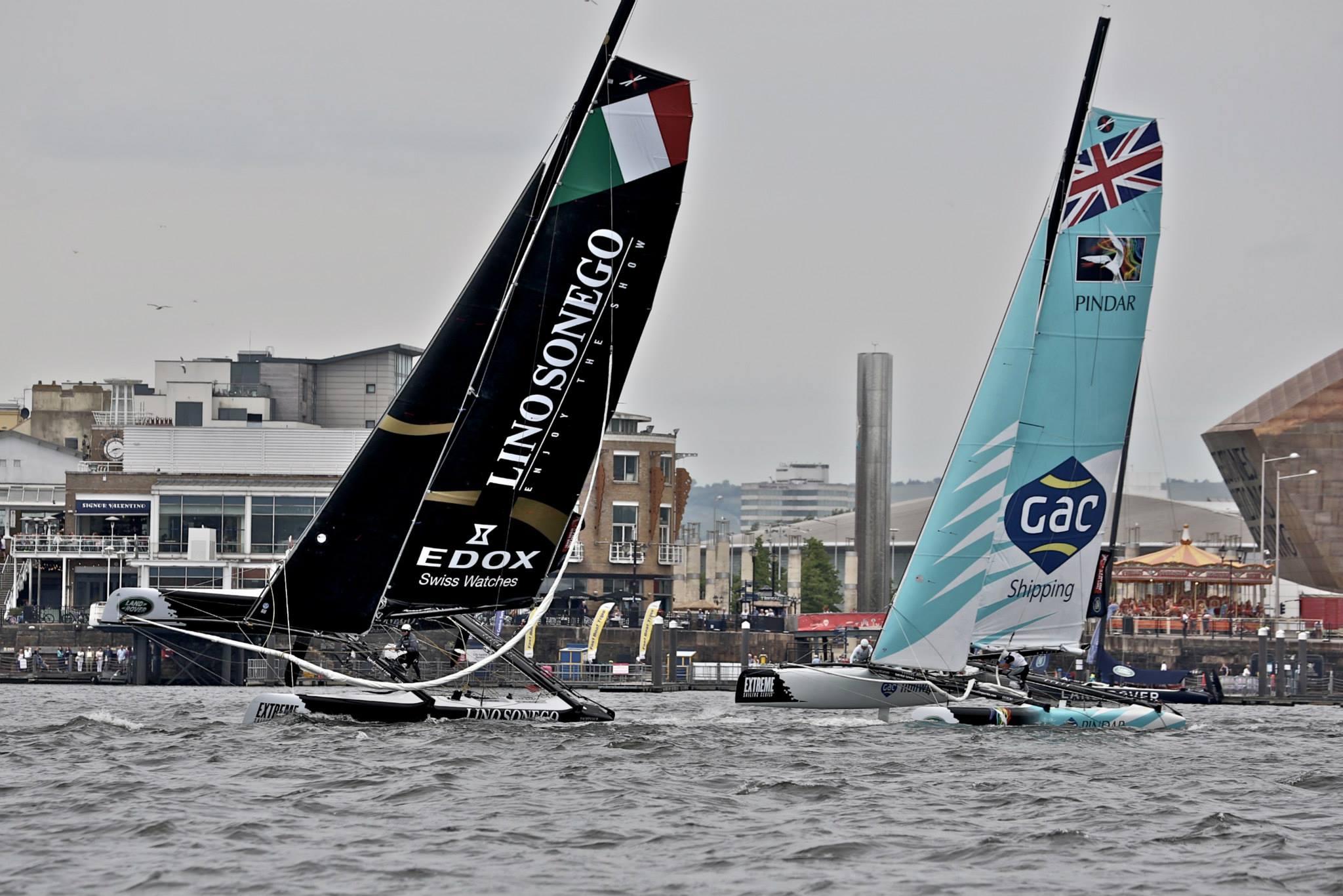 La seconda giornata del quarto act delle Extreme Sailing Series™ ha visto la conferma del team omanita The Wave, Muscat, che con una serie di primi posti ha preso ben venti punti di vantaggio su Sap Esxtreme Sailing Team e su Gac Pindar, che dopo l’ingaggio della “stella” Chris Draper ha visto salire le proprie prestazioni in maniera vertiginosa. Scende Oman Air lasciando spazio e Red Bull Sailing Team. Lino Sonego Team Italia inizia la giornata con un infortunio al suo prodiere Tom Buggy che compromette la stabilità a bordo per il resto delle regate. Risolti i problemi con il frullone, un’altra tegola cade sul team capitanato da Lorenzo Bressani.