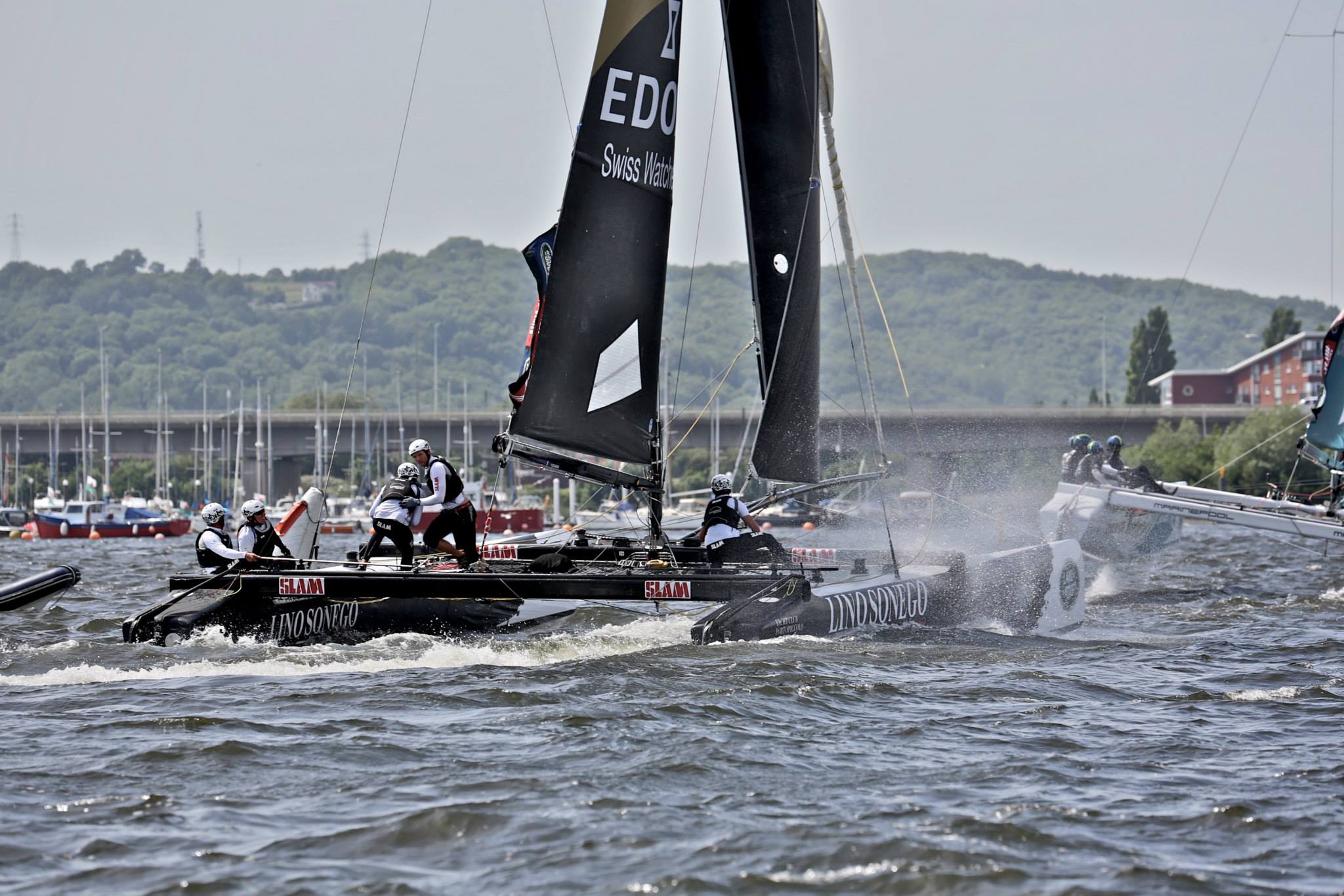 Cronaca della giornata: The Wave, Muscat e Red Bull Sailing Team dimostrano subito grande confidenza con questo campo di regata “racchiuso” all’interno di un bacino veramente ristretto per questi catamarani velocissimi. Oman Air con una serie di secondi posti tiene alto il proprio score. Dietro, grandi battaglie, Lino Sonego Team Italia dimostra di aver migliorato molto nelle prime fasi della regata, l’ottima la partenza lanciata sempre in timing fino alla boa di bolina, segnala sempre una posizione del team azzurro tra le prime tre-quattro della flotta. E’ li che purtroppo c’è molta difficoltà nel manovrare il gennaker, questione di lunghezza, di approccio diverso, insomma se non fosse per qualche incertezza la classifica parlerebbe diversamente. The Wave, Muscat viene centrato dall’equipaggio danese nella terza prova, tanto agonismo ma nessun ferito, per gli omaniti scatta la procedura di “riparazione”, punteggio con la media dei risultati acquisiti sino a quel momento, quasi un colpo di fortuna. La musica non cambia, a parte un acuto di Gazprom Team Russia, vittorie di Red Bull Sailing Team, Sap Extreme Sailing Team, Oman Air e The Wave, Muscat. Battaglia punto a punto per il ruolo di fanalino di coda tra il team turco e Lino Sonego Team Italia. Nove prove stremanti per i velisti, domani si torna in acqua per la seconda giornata, pensando a come risolvere quel problema di manovra, la notte porterà consiglio.