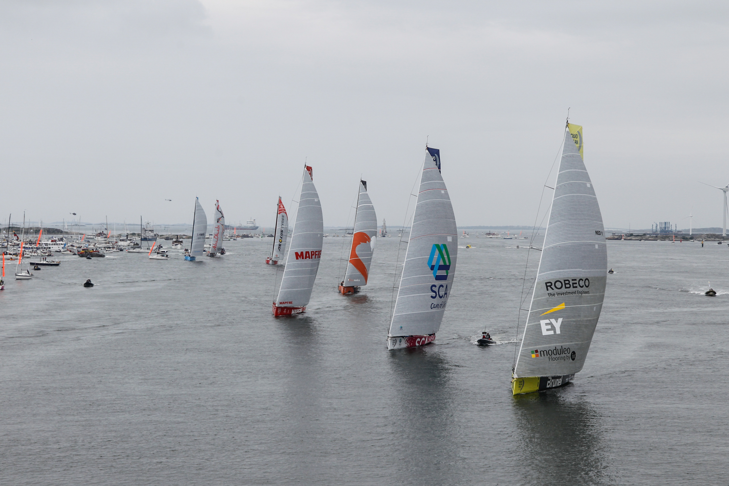 Emozioni a non finire per l’ultima regata della Volvo Ocean Race. Partita pochi minuti dopo le 13 con un vento molto leggero che ha reso complesso il lavoro di tattici e timonieri, la prova si è svolta all’imboccatura del fiume Gothe, con una grande flotta di barche sulle due ali del percorso e un incredibile numero di spettatori a seguire le evoluzioni dei sette team nel villaggio e sulle rive.