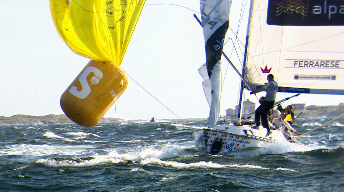 Due anni fa, Simone Ferrarese e il suo team hanno offerto al pubblico uno dei momenti più memorabili nella storia ventennale della Stena Match Cup Sweden. Il team italiano era in vantaggio 2-0 sull’equipaggio locale guidato da Björn Hansen nelle semifinali della Match Cup Sweden 2013, ma gli svedesi si rifecero sotto e vinsero la prova. Quando Ferrarese e il suo equipaggio erano a pochi metri dalla linea del traguardo della regata decisiva, il loro spinnaker si incagliò in una boa, che fu sollevata in aria mentre centinaia di spettatori seguivano da terra.