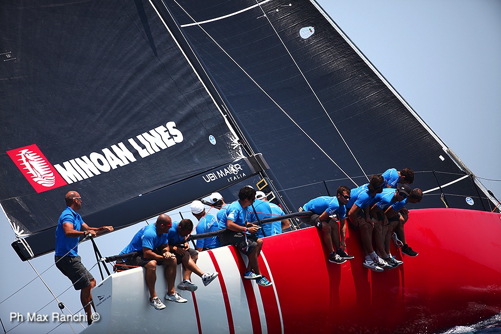 Xio di Marco Serafini. La barca di Rossi è un po’ più lenta di Xio e diSul TP52 Enfant Terrible Minoan Lines la tensione oggi era alle stelle: il team era in vantaggio ma di soli due punti sulla sistership Airis, per cui la loro tattica è stata quella di stare quanto più possibile vicino e marcare stretto l’avversario per non perdere l’esiguo vantaggio, giocando sul tempo compensato. Rossi, che dal 2011 adoggi aveva collezionato 3 mondiali ORC e uno Farr 40 ha potuto aggiungerne uno grazie al secondo posto di oggi con un distacco di soli 7 secondi, con il TP 52 di Roberto Monti, Airis, appena dietro in acqua e in tempo compensato.