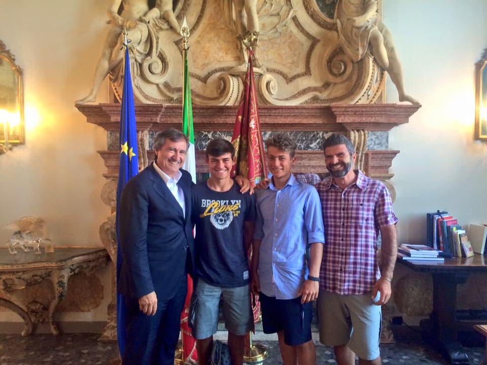 Il sindaco ha donato ai due atleti, accompagnati dal loro allenatore, Luigi De Filippo, il Gonfalone di Venezia, augurando loro buona fortuna per la gara.