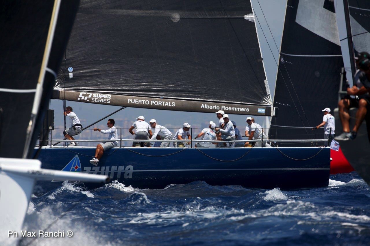 La prima regata prende il via in orario appena dopo le tredici ora locale. Intasamento sul pin, Azzurra a sinistra con Quantum e Bronenosec, Platoon e Alegre prendono la testa della regata. Azzurra soffre molto, alla bolina è attardata. Una poppa veloce malgrado gli 8 nodi d’intensità del vento in questa prima manche. Nella poppa Azzurra spinge sull’acceleratore, al gate Platoon Ràn e Alegre formano il plotone di testa, Quantum e Bronenosec seguono, i russi incalzati da Azzurra proprio al gate virano in affanno e si prendono una penalità. Flotta splittata, Azzurra non ci sta. Alla seconda bolina ancora in testa i tedeschi davanti agli svedesi, inizia la poppa, i tedeschi hanno un gran passo, Azzurra è quarta, rimonta compiuta per i ragazzi capitanati da Guillermo Parada. Azzurra va a destra mentre primi tre vanno al centro del campo di regata. Platoon vince facile davanti a Rán il terzo posto va ad Alegre, quarto Quantum quinta Azzurra che non può lamentarsi dopo una prima parte in sofferenza, seguono Provezza, Sled, Gladiator Phoenix, Bronenosec, Xio e Paprec.